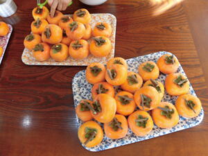 畑で採れた沢山の柿をピーラーを使って皮をむきました。ピーラーで皮をむくアイデアいいですよね!