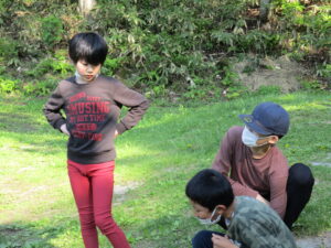 中には「先生、蝶々!!」と嬉しそうにする声や、丸太の上にいるアリの群れを見て「うわ!!すげぇ~。見てみて」と驚き、たくさん自然に触れた日でした。