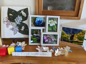 雨やどりでは利用者さんの制作した作品、写真を廊下や雨やどりの部屋に展示しています。