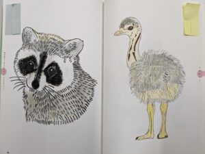 ↓色鉛筆とクレヨン画材を工夫して描かれていていいですね。