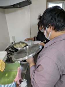 自己紹介を終えてから鍋の具材を洗う、切る、煮るを分担して作業しました。