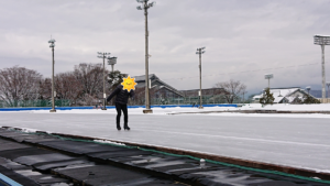 当日の朝は雪が降って天候が心配でしたが、午後になると天候がよくなり青空も見えてきました。青空が見えてくると嬉しくなり気持ちよく滑ることが出来ました。