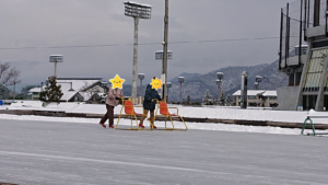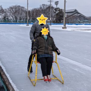ラビットに乗せて貰いスケートが上手な参加者さんに押して貰いました~!風を感じて気持ちよかったです(^^♪皆さん楽しまれていました。活動の最後まで天気に恵まれ楽しく滑ることができ、あっという間に2時間たってしまいました。