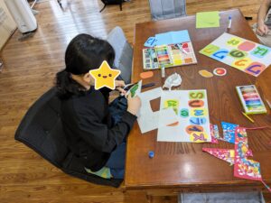 『わくわくのはたけ』・『SUNライズのはたけ』を利用者さんが色画用紙に1文字ずつクレヨンで描いて紙に貼り看板をつくりました。