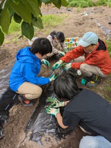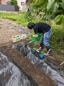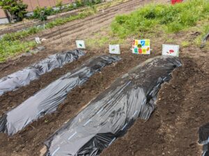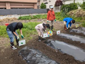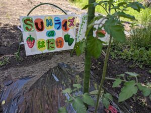 完成した看板を畑に設置して、SUNライズの畑にトマト🍅の苗を植えました。