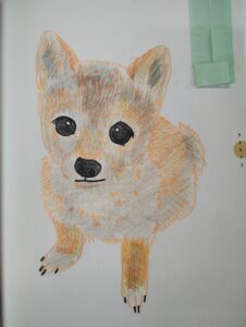 ↑蛍光ペンと色鉛筆を工夫して使用し描いています。毛並みのフワッとした柔らかく優しい感じが表現されています👏✨