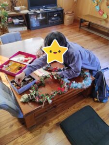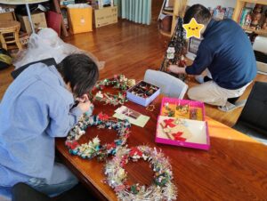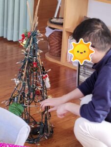 15日(木)にはクリスマスリースとツリーの飾りつけをしました。飾りつけ後にリースを各部屋の扉に飾り、ツリーを点灯させて「いいね!綺麗だねー✨」とみんなでクリスマスの雰囲気をいち早く味わう事が出来ました👏✨