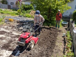 今年も大家さんから耕運機をお借りして畑を耕しました。