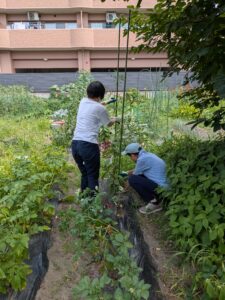 7月9日(水)のSUNライズは利用者3名、スタッフ2名でワクワクひろばの畑の草取りと苗の手入れをしました。