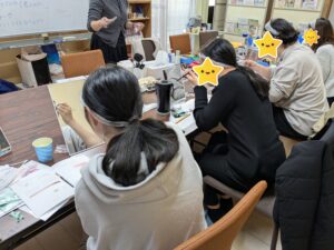 先生のお話をしっかり聞いていて、メモを取ったりして興味を持っている様子が伝わりました。皆さん上手にメイク道具を使ってポイントメイクをして、とても素敵に仕上がりました✨
