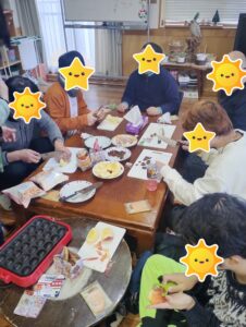 12月14日(日)の雨やどり(フリー)のクリスマス会は6名参加されました。皆さんとても楽しみにされていた様で、差し入れを沢山もって来て下さいました。