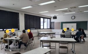 2月22日(土)13時〜より尾花沢市の尾花沢市共同福祉施設で若者相談支援拠点フリースペース雨やどり『対話交流会In尾花沢』を開催しました。参加者は4名、クリエイト東根のスタッフ2名と雨やどりスタッフ3名計9名でした。