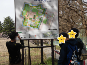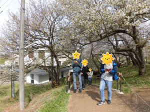 散策途中で公園内の説明看板を見てみんなで会話したり、電車の時間を調べて桜と電車のコラボ撮影も出来ました📷✨。