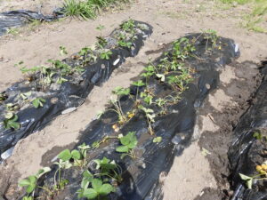 畝を作ってマルチシートをかけイチゴ🍓の苗を植えました。