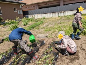 1日目は草取りとイチゴの苗をプランターに移しました。みんな頑張って作業をしてくれました。